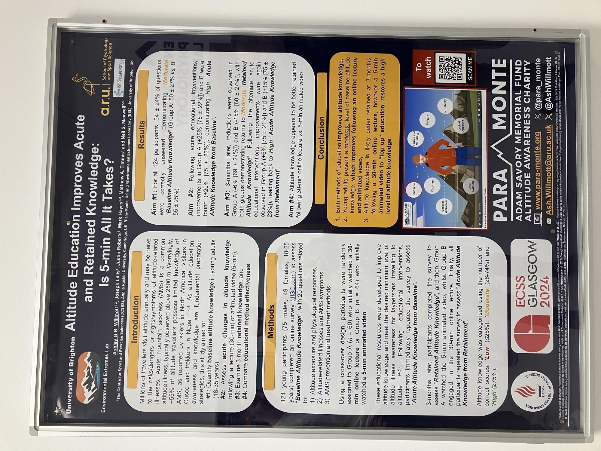 All together your donations with gift aid raised £617.50 towards future altitude education programmes / chamber sessions and research at Anglia Ruskin Cambridge and UoB Universities.